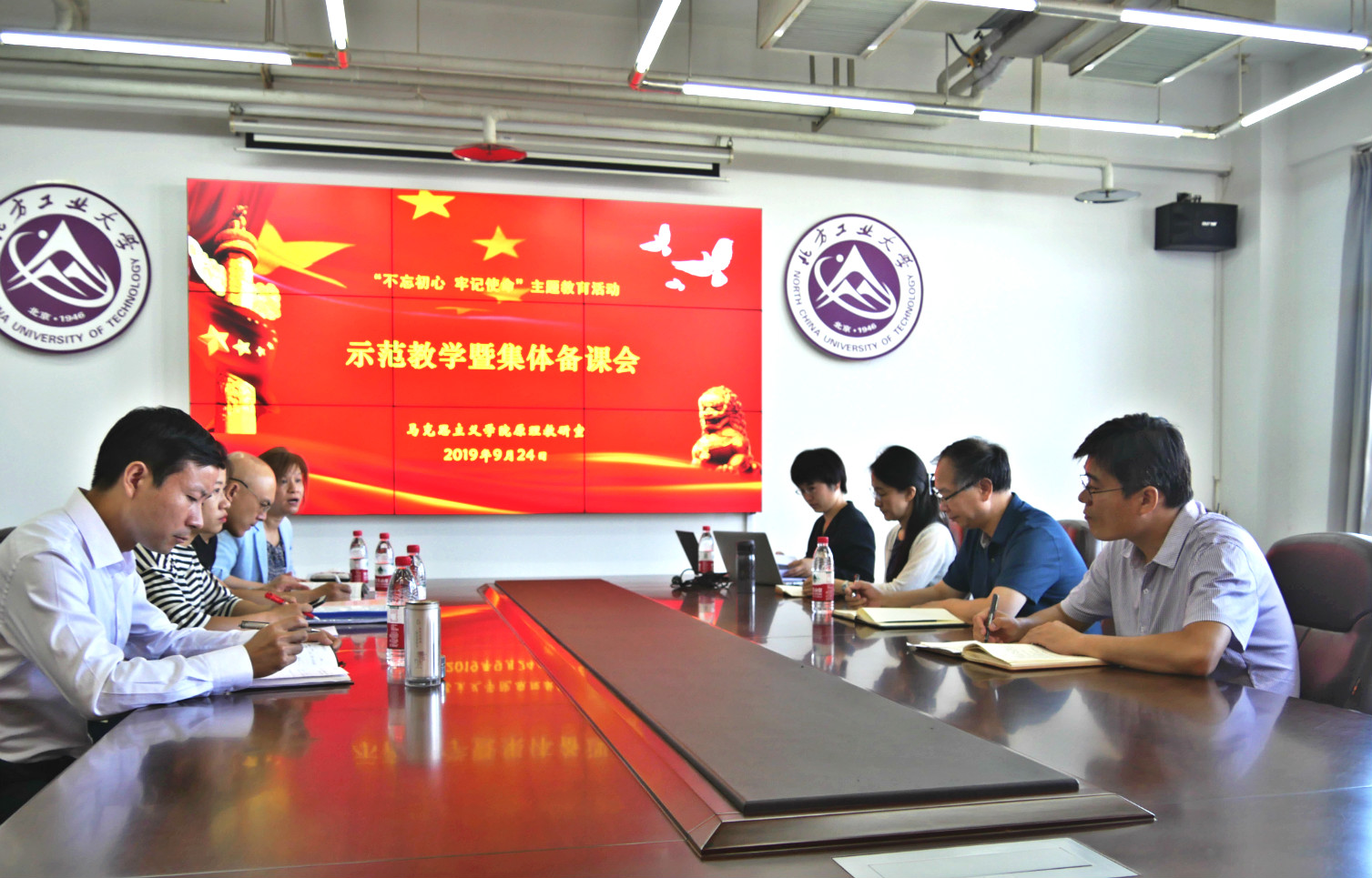 在全党进行第二轮“不忘初心、牢记使命”主题教育中,今年会jinnianhui官网原理教研室于2019年9月24日上午进行了“不忘教育初心、牢记教师使命”集体备课会。这次备课会主要包括三个方面的内容:一是围绕思政理论课教师“教什么书、怎样教书”这个目标和主线,就如何深化《原理》课程专题教学、提升课堂教学的实效性进行了集中讨论;二是讨论本科生《原理》课程平时成绩的核定方式;三是新进教师教学“一刻”展示与点评。