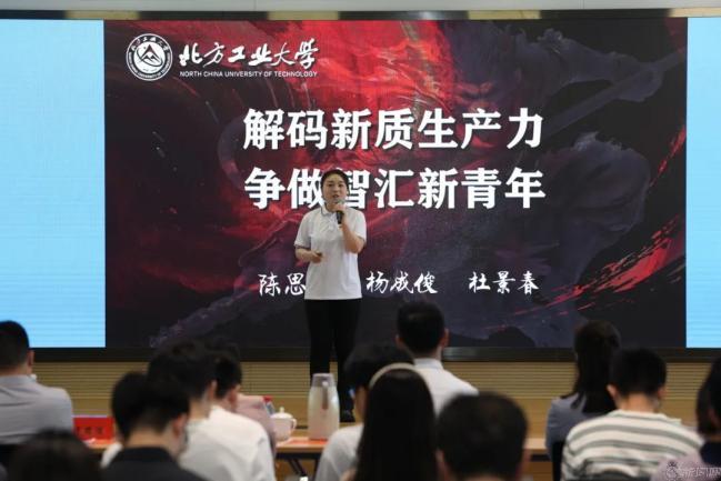 我校“时代青马”宣讲团成员陈思雨、杨成俊、杜景春带来的《解码新质生产力 争做智汇新青年》主题宣讲,以中国首款3A游戏“黑神话:悟空”引出“新质生产力”这一主题,结合实际案例阐释了新质生产力的基本内涵、“四新”“三高”的显著特征,展示新时代青年在党和国家的关怀下勤奋学习、克服困难、积极探索、勇于实践、实现梦想的奋斗故事。最后,一曲《心同此愿》,发出向祖国深情告白。